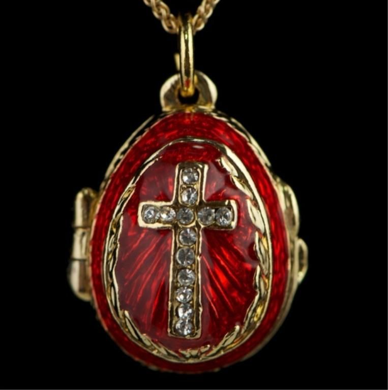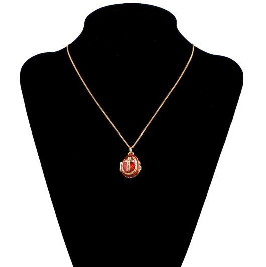 The oval central stone within a border of crystals is surmounted by a blue and white enameled beauty. The pendant contains the same symbol as the ornamentations but in a a golden texture with small crystals. This piece offers simple contrasts of color and texture. Features: 0.75"(H) x 0.5"(D) Pewter, Enamel , Chain is not included