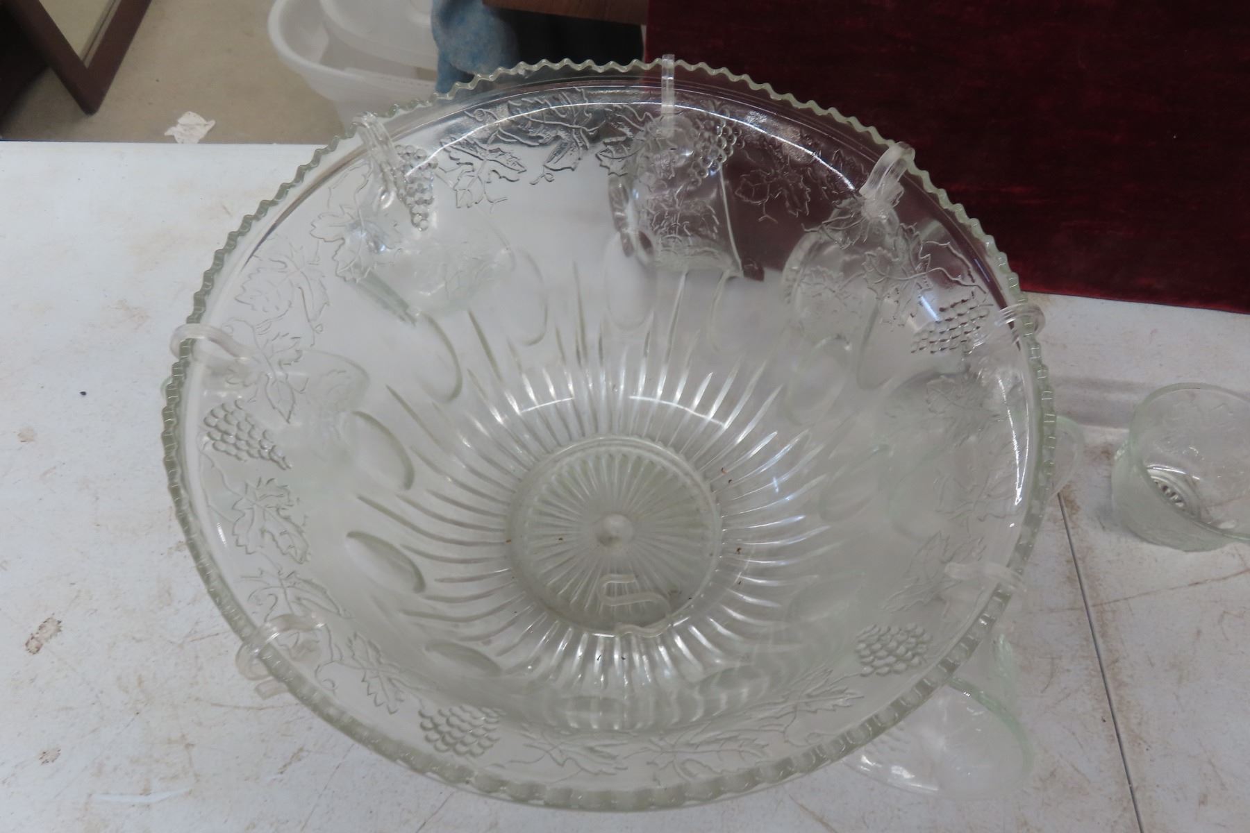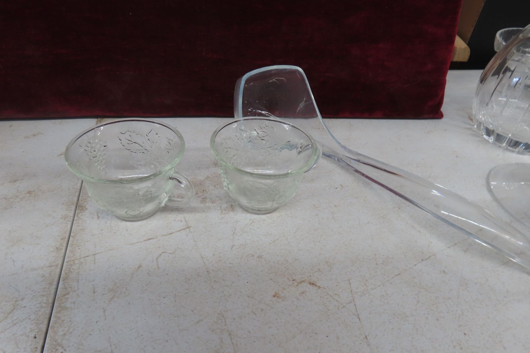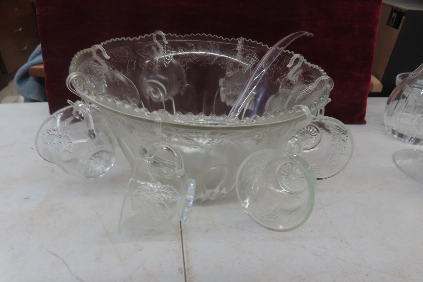 Crystal Cut Glass Serving Ware Salt Pepper Shakers, Punch Bowl With Ladle and 8 Glasses