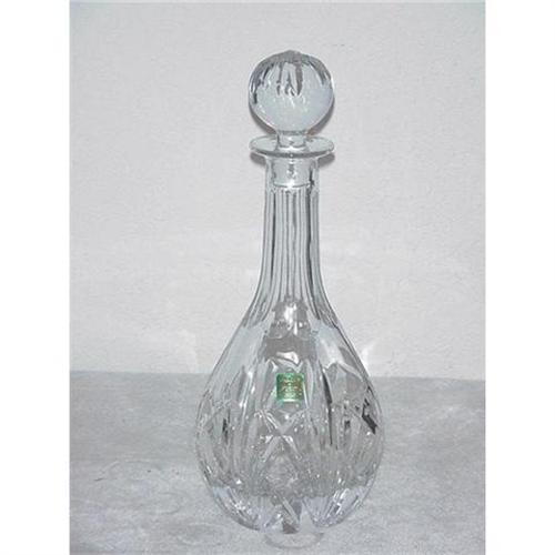 A beautiful crystal decanter, 12 3/4" tall, 5" in diameter. The paper label reads: Marquis by Waterford, made in Poland. Marquis by Waterford is etched on the bottom the decanter. The decanter is in beautiful unflawed condition and appears to have never been used. (4)