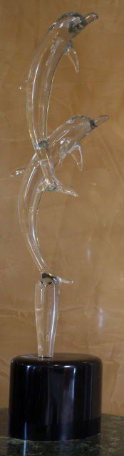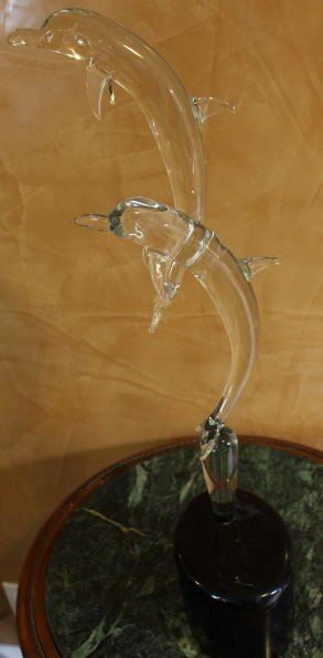 Vintage Crystal Statute Dolphins w. Black Lacquer Base 31", 8-lbs