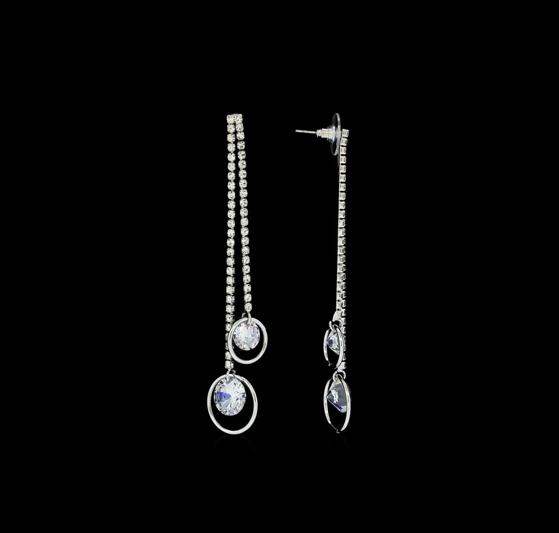 High end designer jewelry. Crystal Earrings - Rhodium. Rhodium. Silver/ Clear. Post.