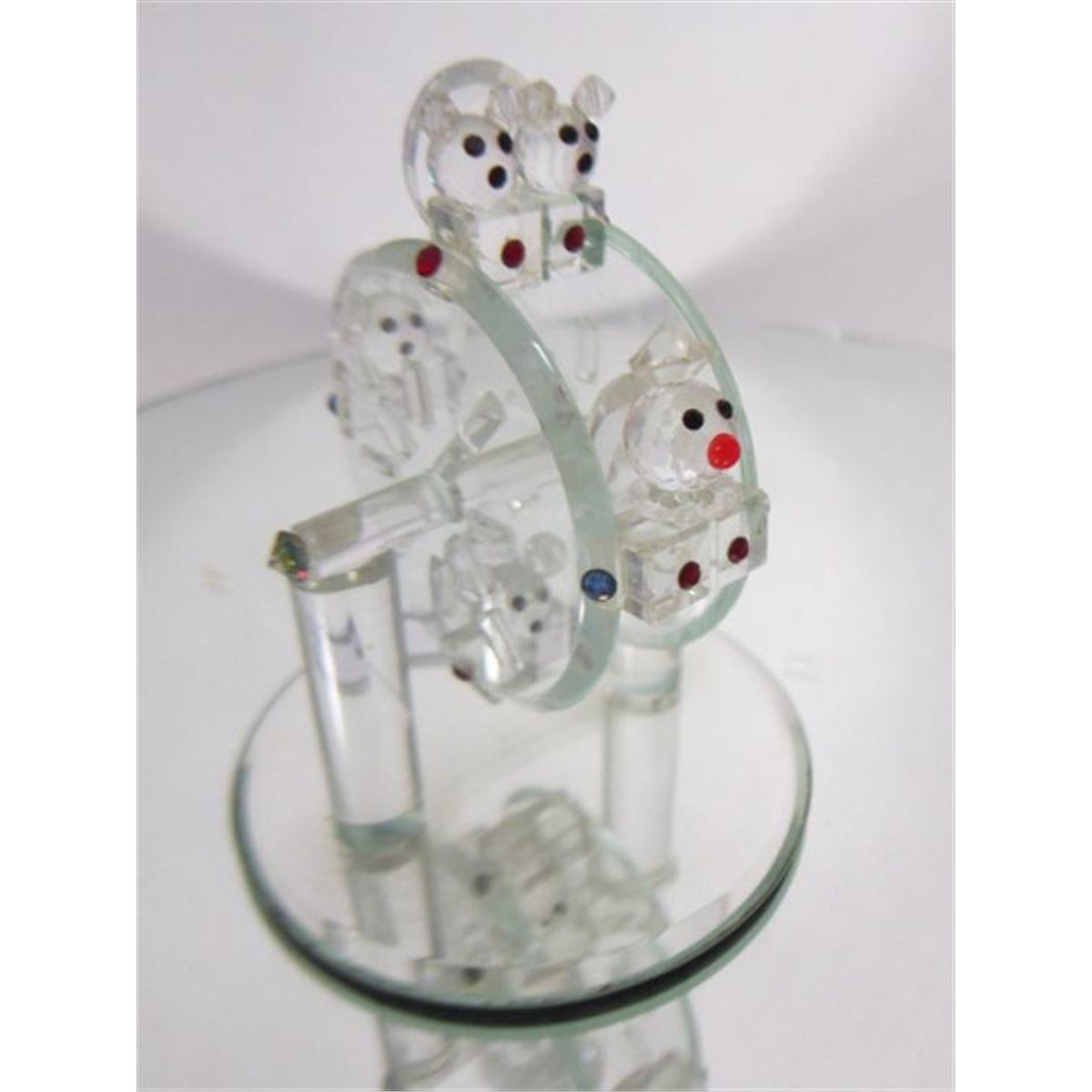 Crystal Ferris wheel with colored stones on mirrored base 3 1/4 tall- unmarked Swarovski??