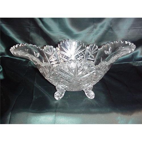 Crystal center piece bowl. 13 1/2" long x 7 3/4" wide x 5 1/2" tall. Fire polished. ( There is 1 chip on rim).