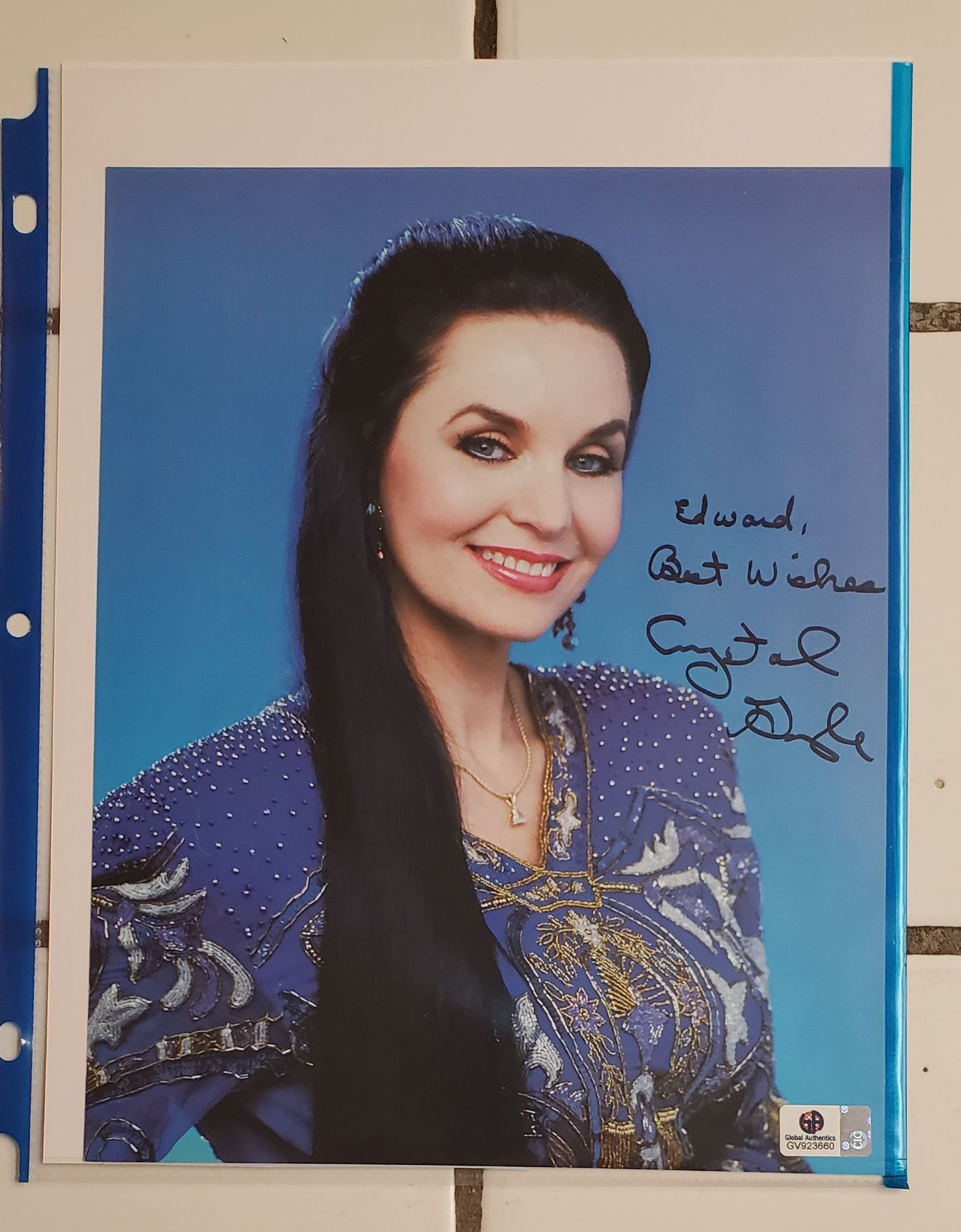 An 8” x 10” photograph signed by Crystal Gayle. Global Authentics authenticated the autograph, providing a COA numbered GV 923660.