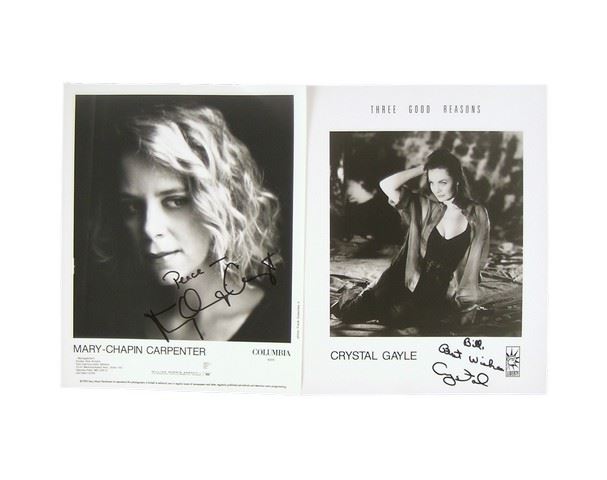 Crystal Gayle & Mary-Chapin Carpenter Signed Photos - From the music world signed photos of Superstar country-western artist Crystal Gayle and Mary -Chapin Carpenter. (B&W, 8"x10").