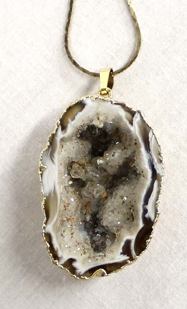 Crystal Geode Pendant Necklace, chain measures 24''L end to end and pendant measures 1'' x 1.5''