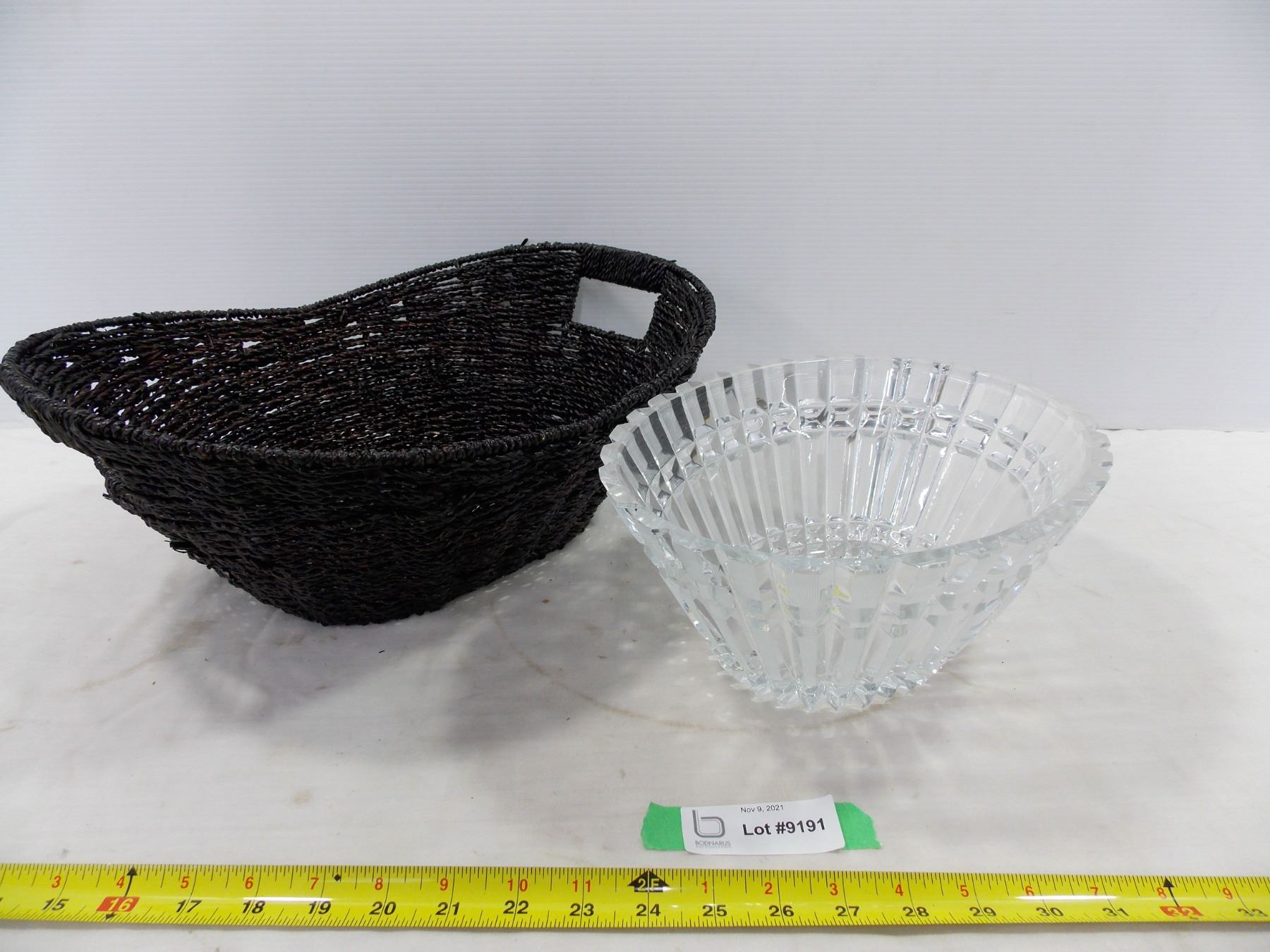Crystal Glass Bowl and Wicker Basket