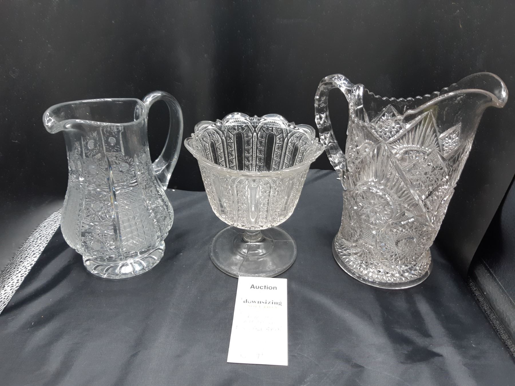 Jug 8", Footed Bowl 5x5x6, Jug 7" Bring packing material and pickup at 10 am
