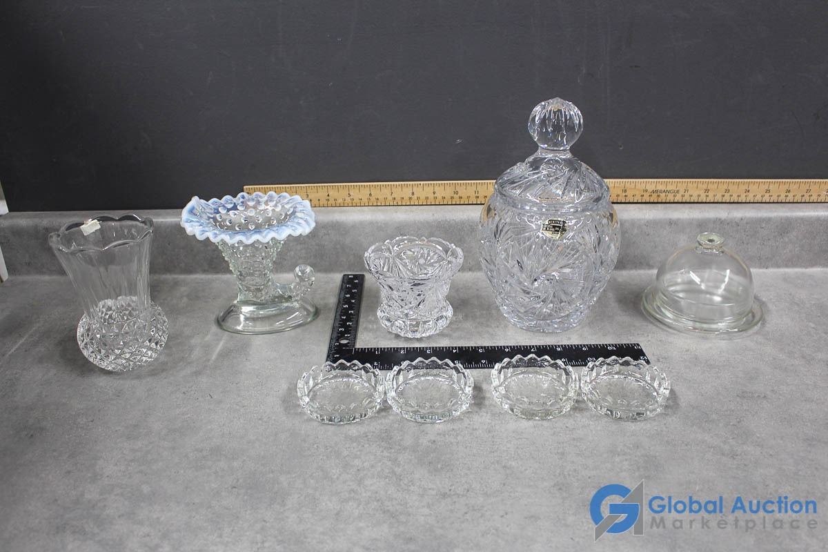 Crystal Glass & Clear Glass Coasters, Vases, Cheese Dish