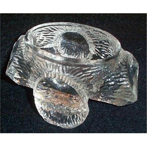 This fantastic Crystal Pressed Glass Log Shaped Open Salt is in Good condition with some inner rim roughness on the inside of the salt and a couple of small nicks on the edges of the log where it is beveled. The salt measures 3" long and is 2.50" wide and stands about 1" tall. Sorry to say I don't know the maker.