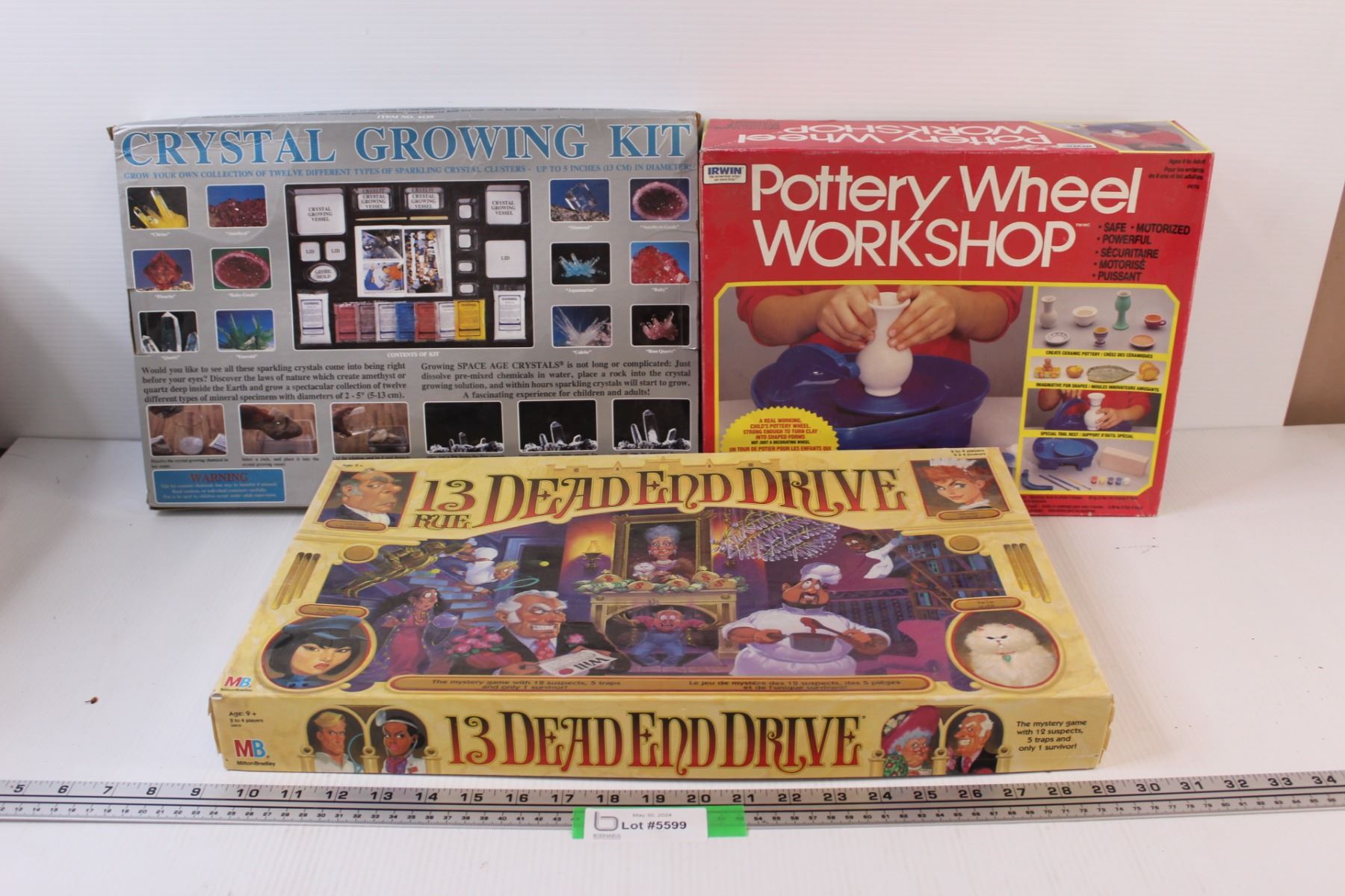 Crystal Growing Kit, Pottery Wheel, 13 Dead End Drive Board Game ( All AS IS)