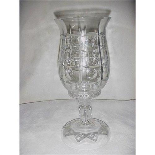 Crystal Hurricane, 14" tall x 6 1/4" at bass. 2 Pieces. Hurricane shade is 8 1/2" tall x 6" in diameter. (Slight chip on the top of the hurricane shade.) unsigned.