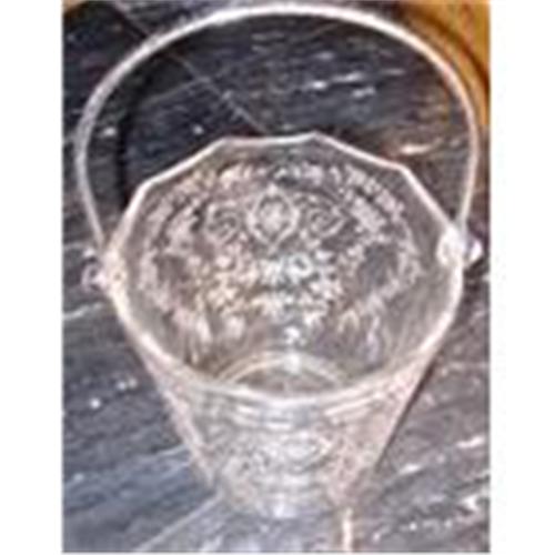 This is a sweet Crystal Ice Bucket Diane Pattern with a silver-plate or Chrome handle. A very nice wedding or anniversary gift.