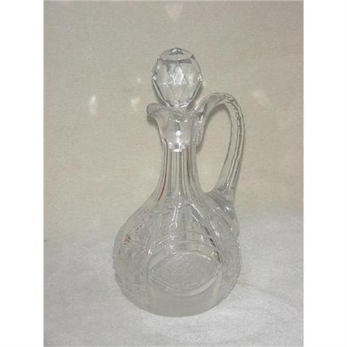 A mid 20th century crystal jug with stopper,10 1/2" tall, 5" in diameter. Nice cut design in very good condition, no chips.