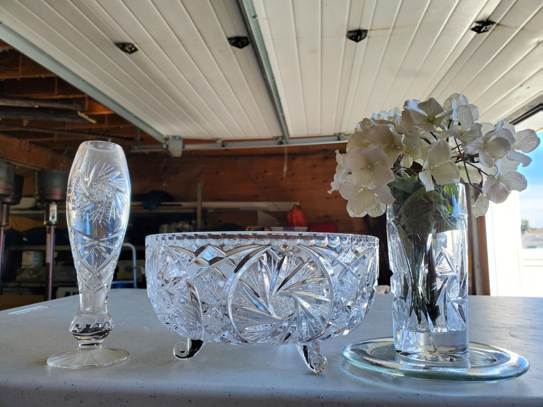 Crystal vase, serving bowl and smaller vase.