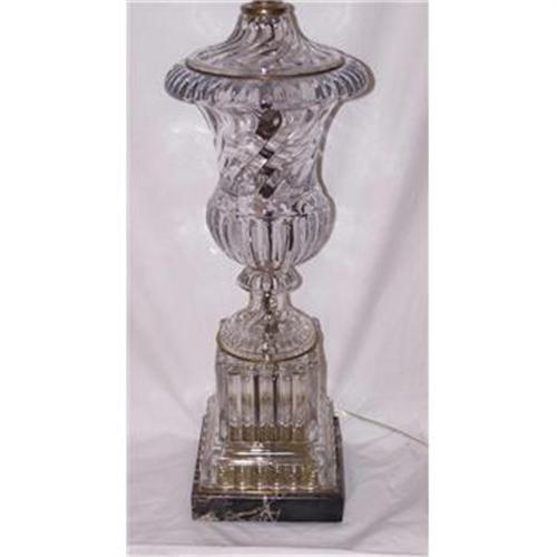 Crystal Lamp---Swirl Design, Marble Base with brass plate. Circa, 1920