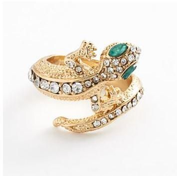 Green and White Crystal, Lizard Bypass Ring Width: .98 in. Size: 7