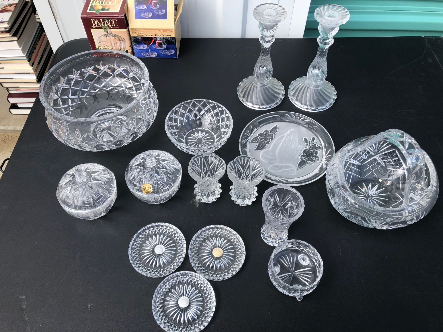Crystal candlesticks, bowls, coasters
