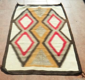 Navajo Eye Dazzler Chrystal Rug 37 by 54 Good Condition slight moth damage. Brown, beige, grey and red. Some minor staining. S940's Shipping $18.00 Slight moth damage otherwise good condition Some minor staining