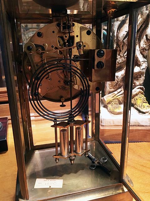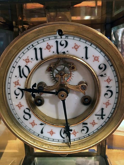 Beautiful crystal regulator clock, attributed to Ansonia Clock Co., open escapement, ornate porcelain dial.