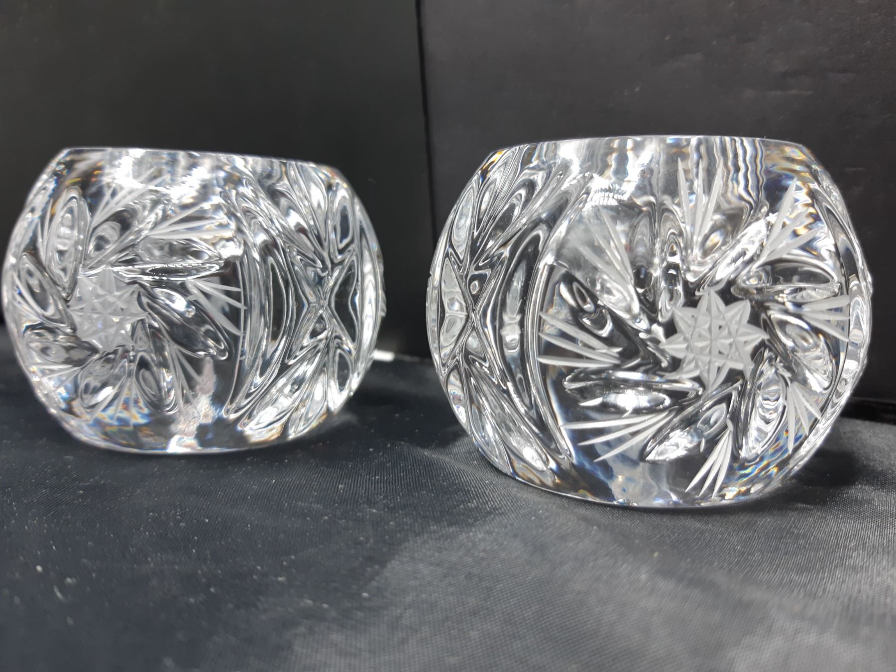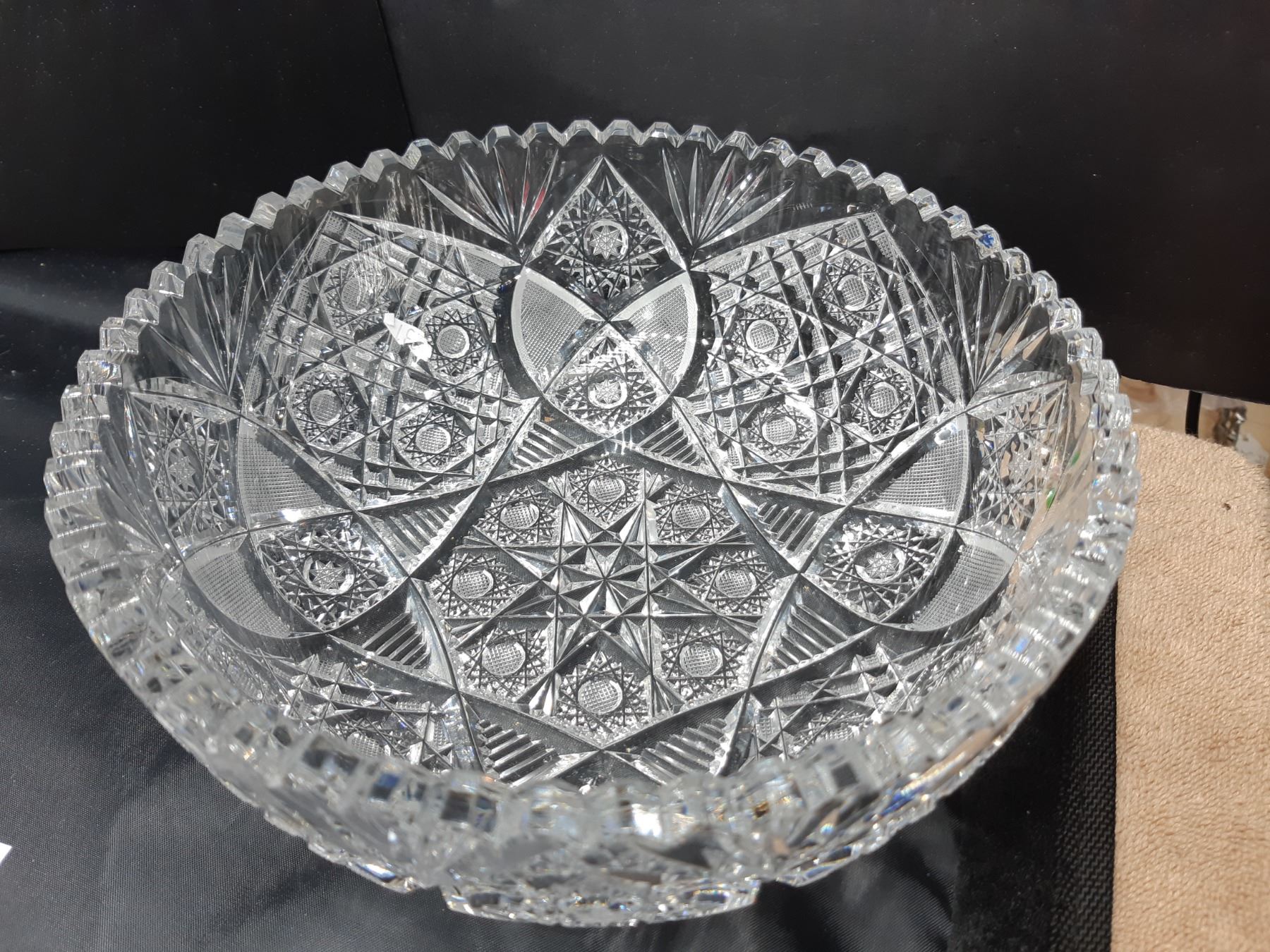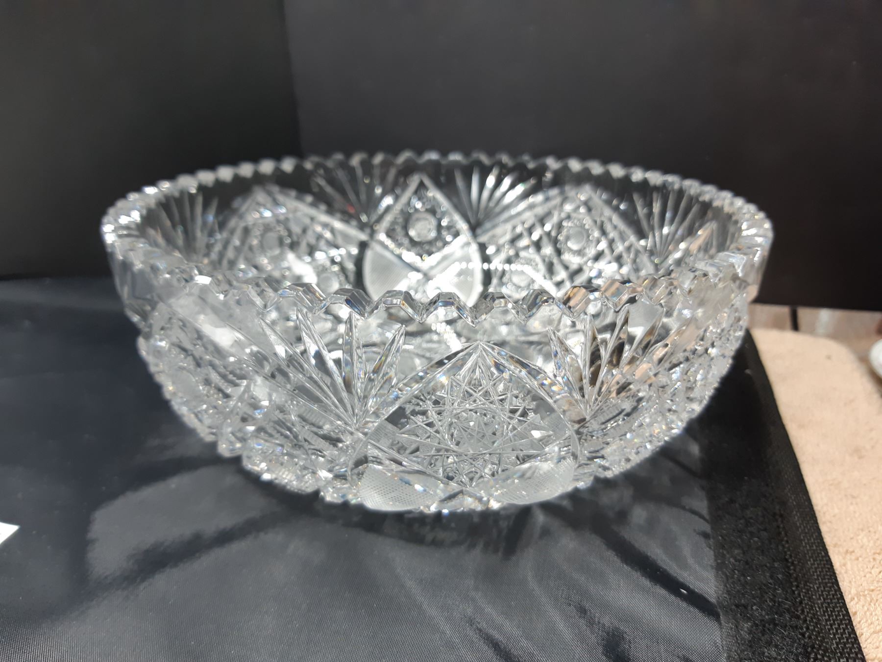 Large bowl 8x8x3, 3 Cut glass goblets 3", Crystal S&P, Covered Butter Dish & 2 candle holders Bring packing material and pickup at 9 am