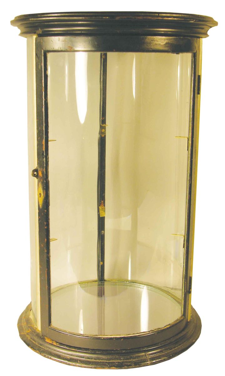 Crystal Showcase, no shelves. Lights up. Good condition. 17 inch diameter X 26 1/2 inches tall.