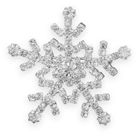 Silver tone base metal crystal snowflake fashion pin. The pin measures approximately 42mm. Fashion jewelry contains base metal.