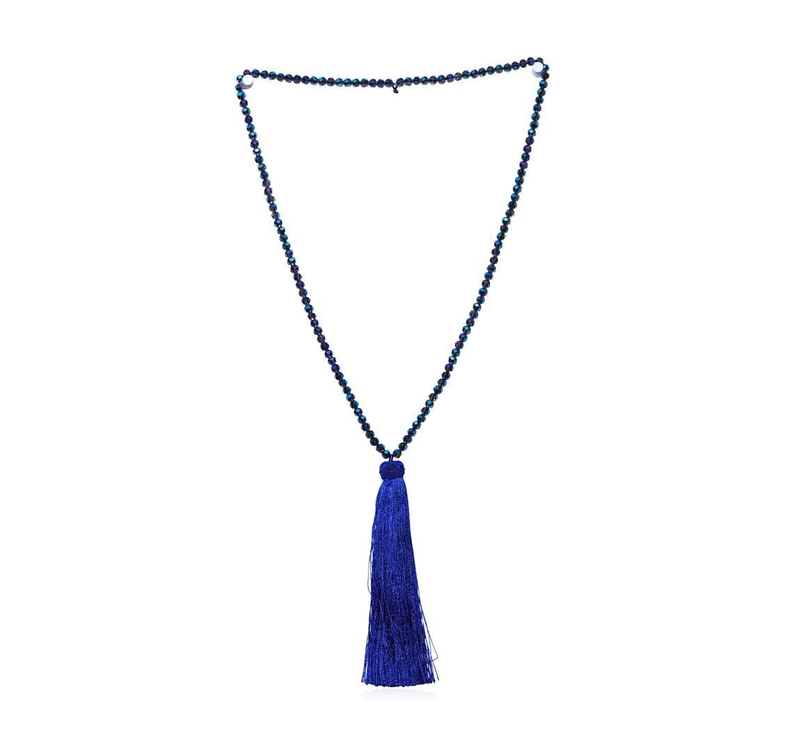 High end designer jewelry. Crystal Tassel Necklace. Czech Crystal. Blue. 30/6inches.