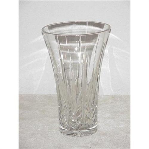A large crystal vase, 10" tall, 6 1/4" diameter at the top. Cut design starts at the base of the vase and flares out with the top. Signed on bottom Irish Rose crystal.