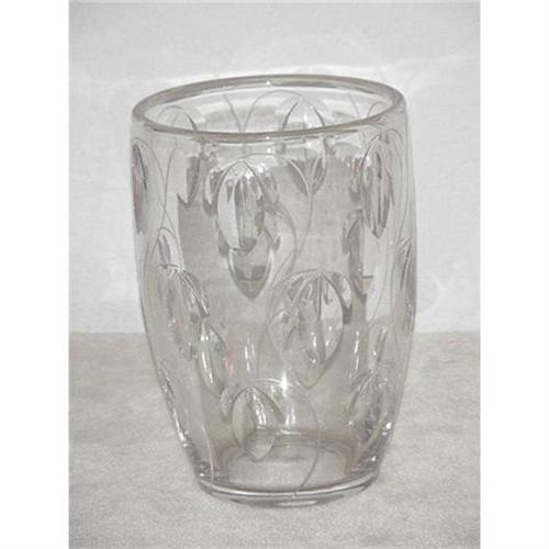 A large crystal vase, 8 3/4" tall, 6" top diameter. Vines and leaves decorate the vase that is marked England on the underside. Condition is very good the glass is clear and there are minimal scratches from use, no chips or cracks. (5+)