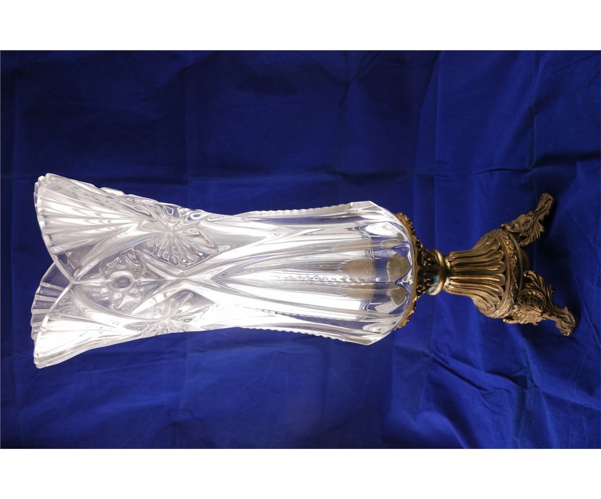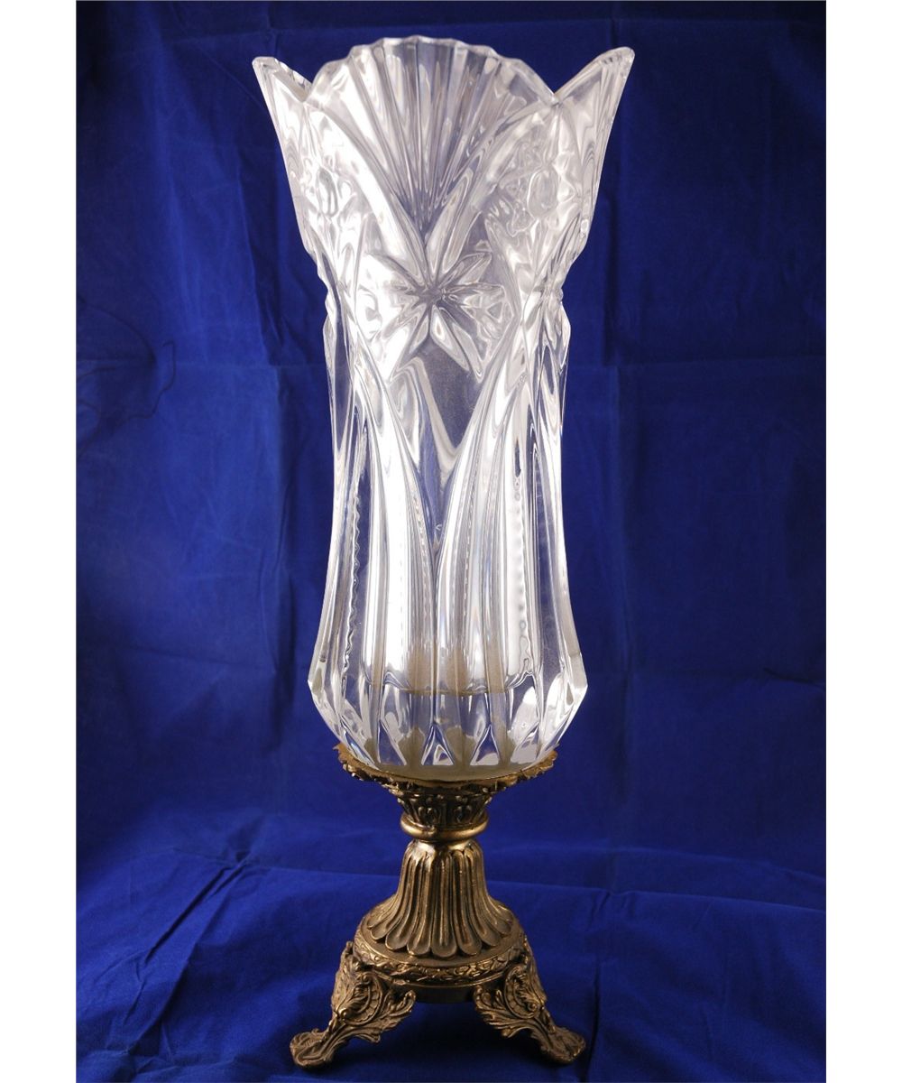 Beautiful crystal vase on bronze three legged pedestal. No chips or cracks. 14"T x 5"D