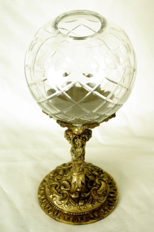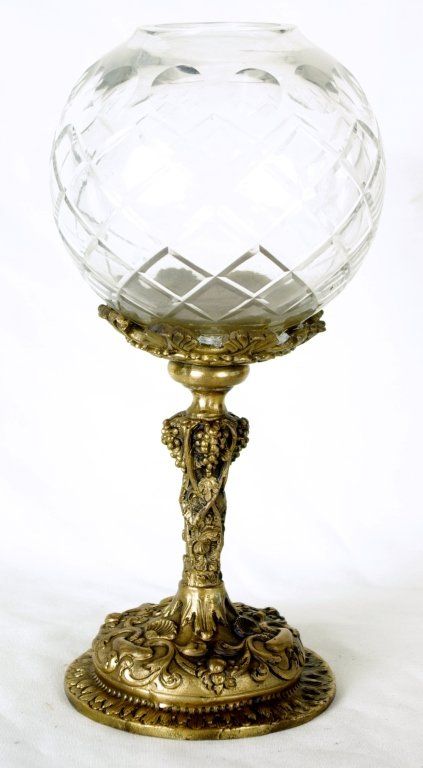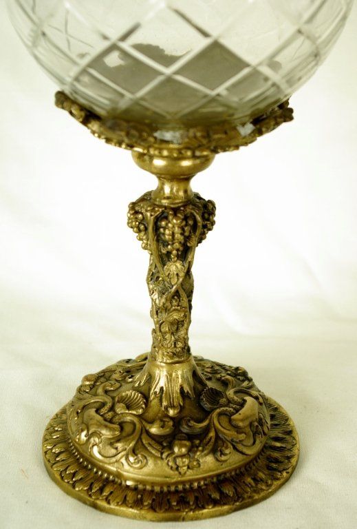 Crystal Cut Vase with Gilded Bronze Base, measures approx 12"H x 4" In very good condition Condition: Very Good