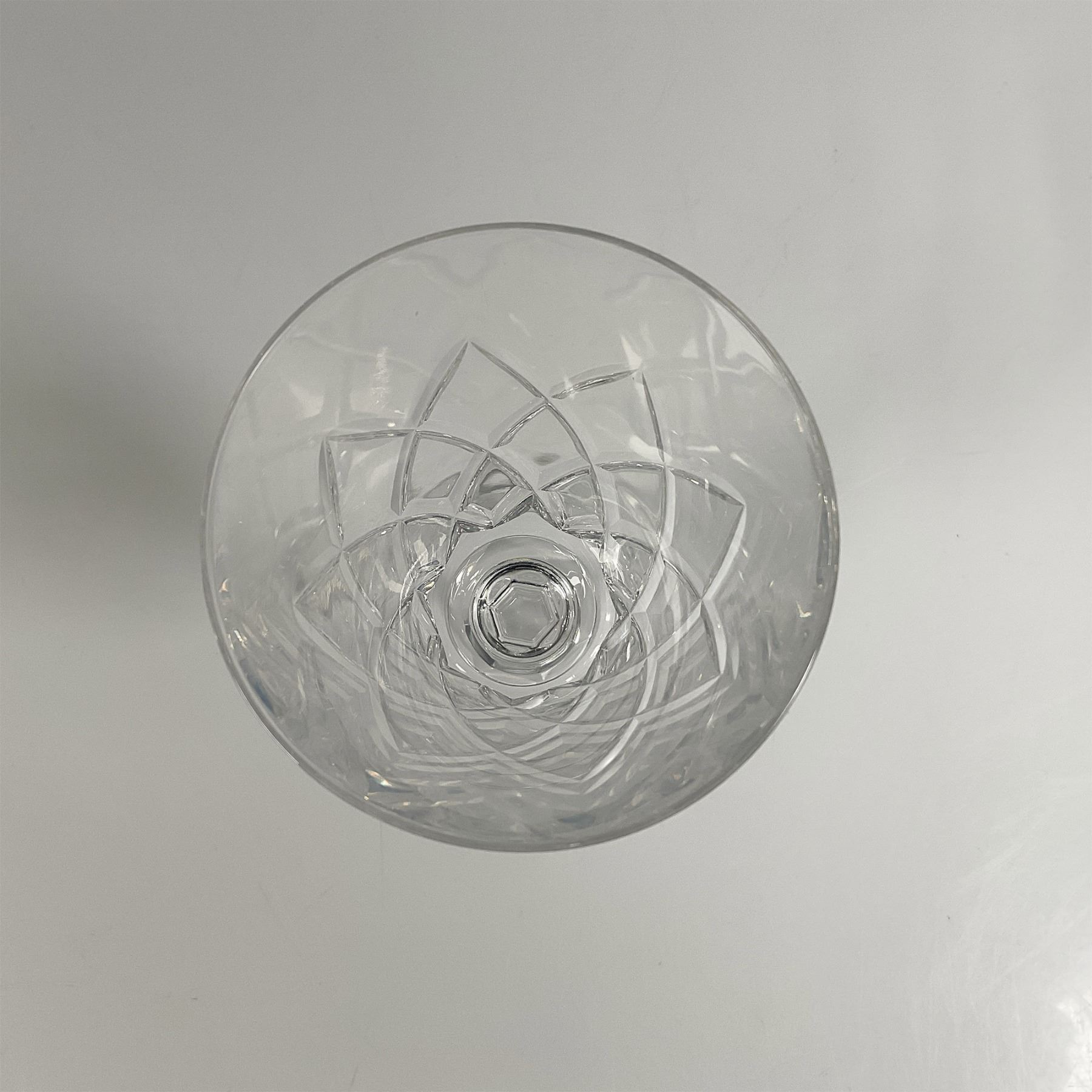 Exquisite Irish crystal glassware featuring intricate and elegant patterns, including dazzling diamond and star shaped cuts. Unmarked.