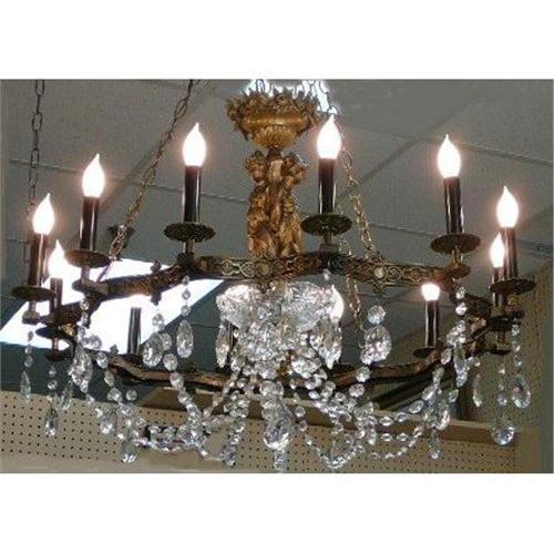 <tr><td>Title:Crystal and Gilded Figural Chandelier</td></tr>