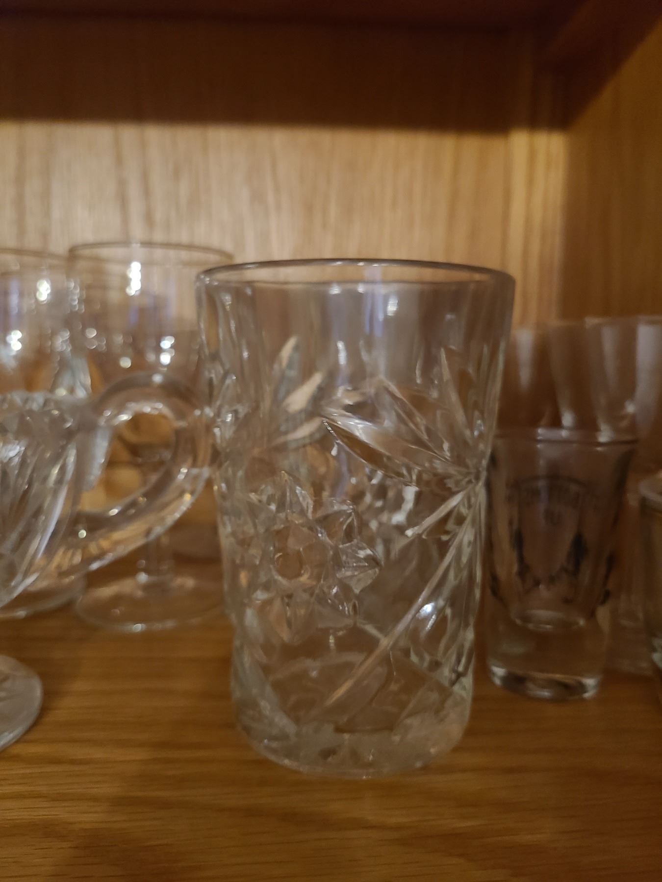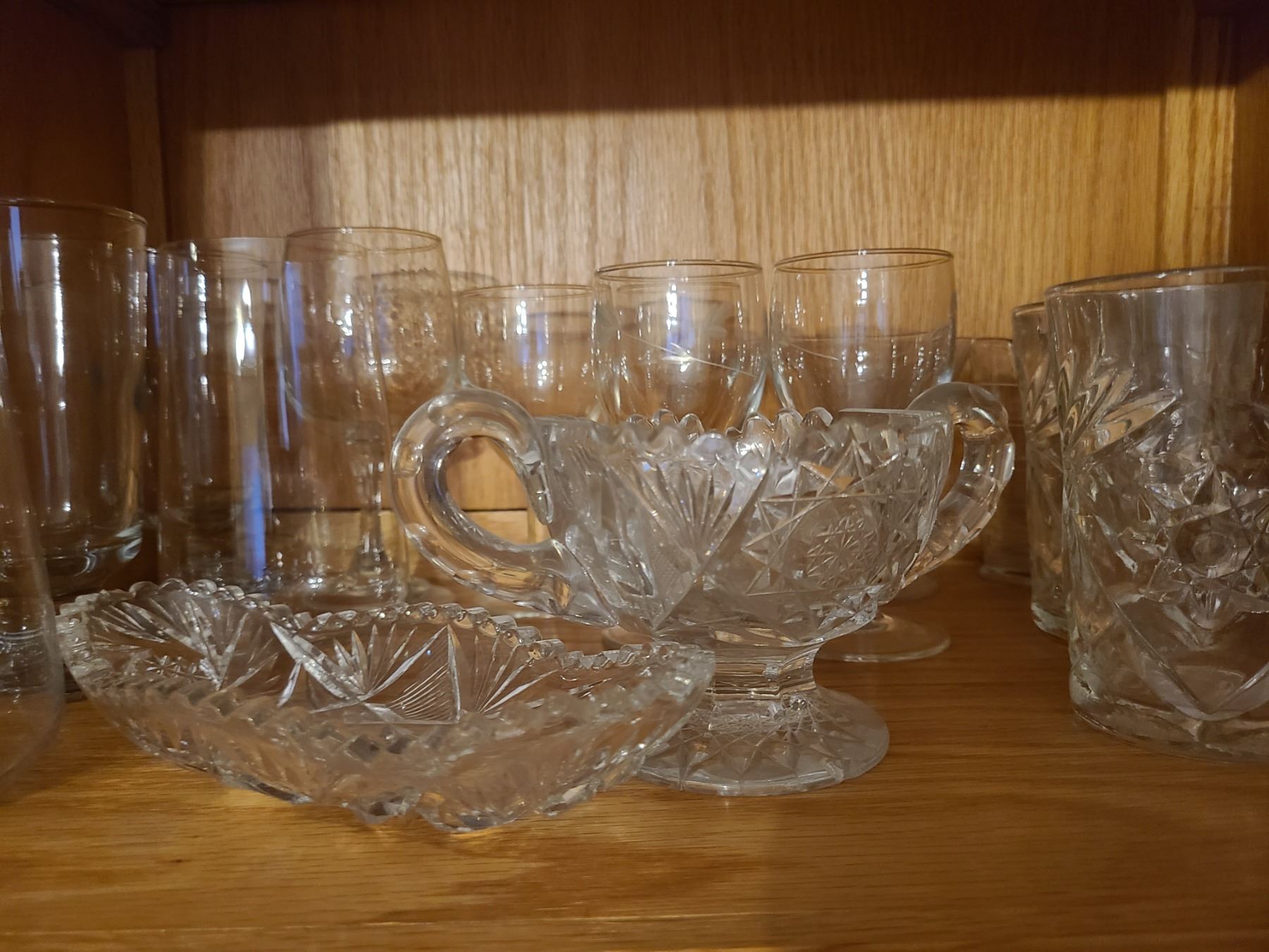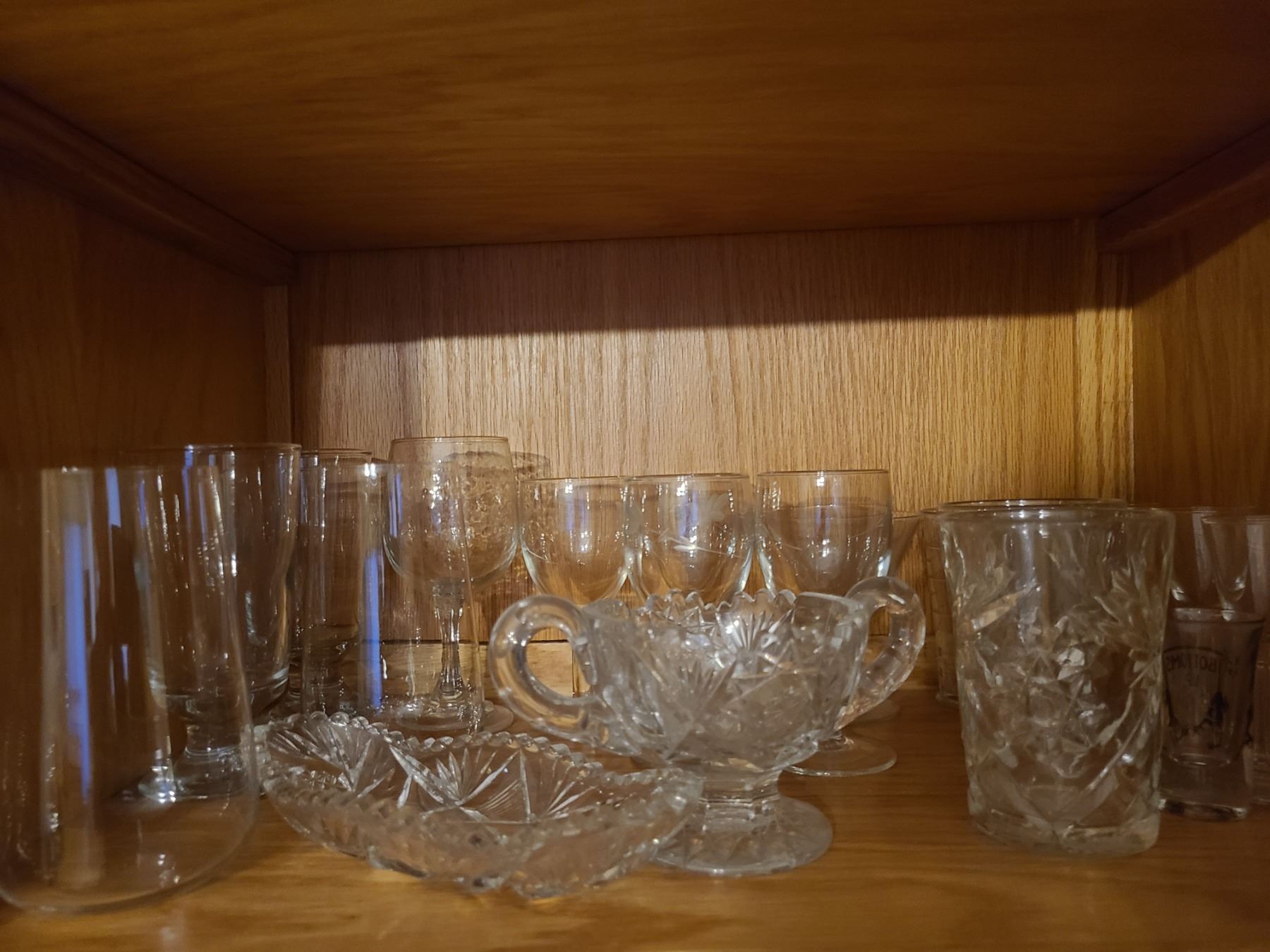 Three shelves of crystal and more. Bring packing supplies. Pickup at 9 am.