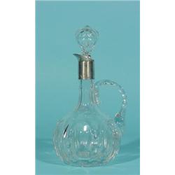 Crystal decanter with handle and silver throat, h. 28 cm.