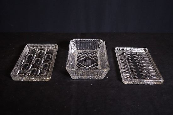 square dishes: 8*8cm; rectangle plates: 18.5*11*4cm, 18*10*2cm, 18*10*2.5cm; H (Jewelry trays): 6cm; H (stem-cup): 6cm, 6.5cm