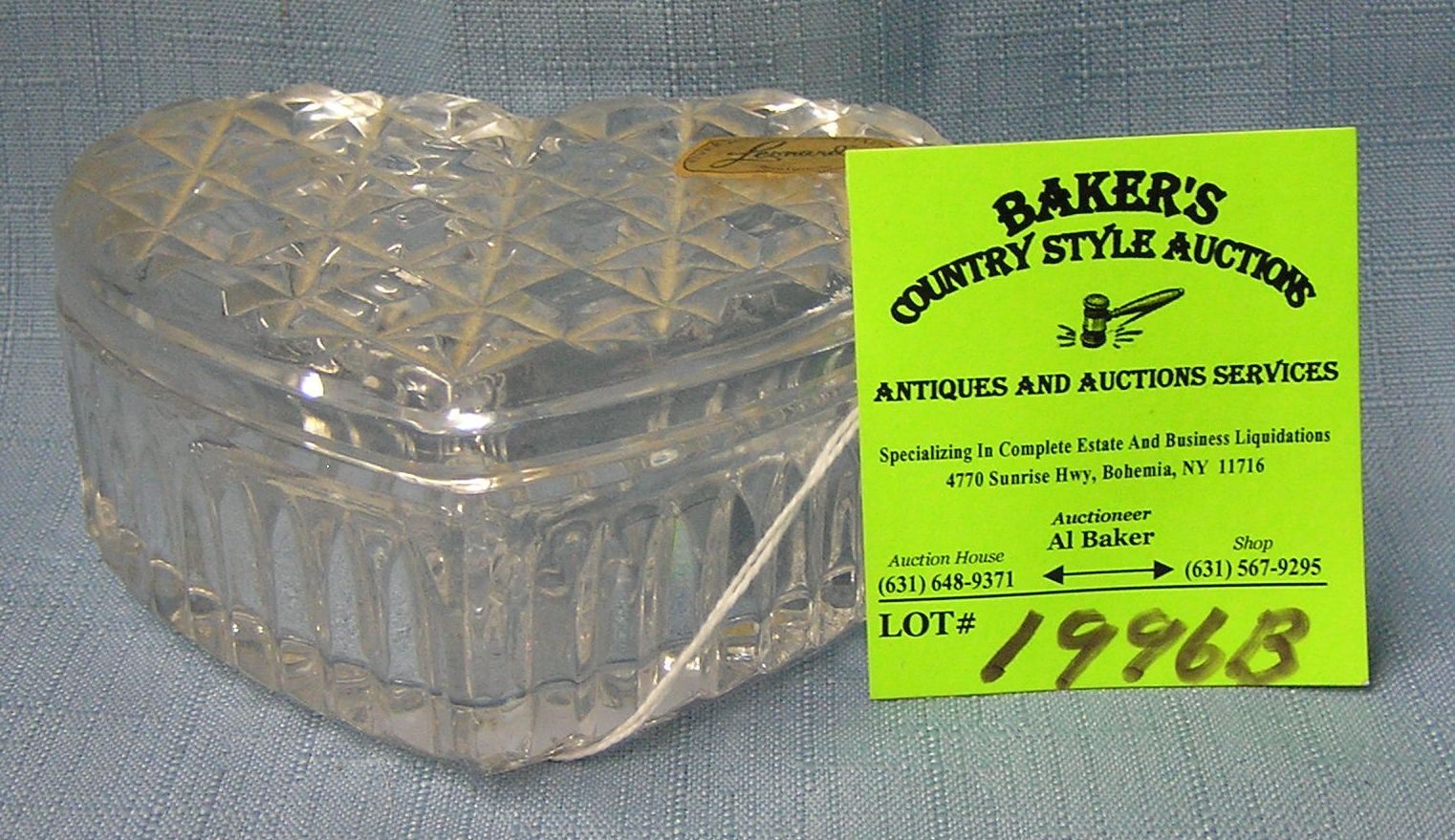 Crystal heart shaped trinket box signed Lenard est. value $25.00-$35.00