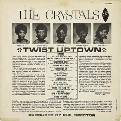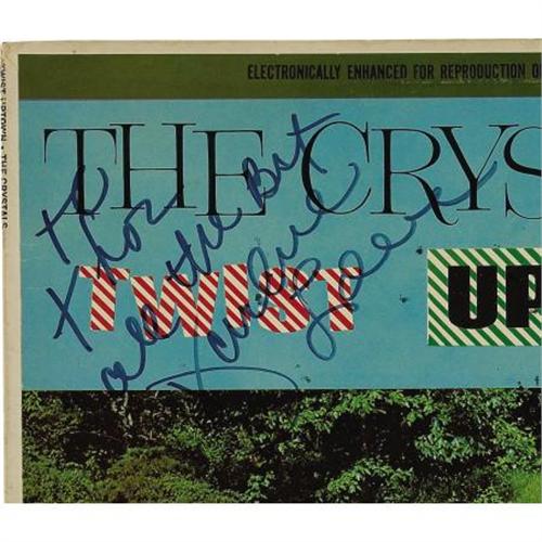 <B>Crystals</B></I> <B><I>Twist Uptown</B></I></B></I> <B>Autographed Stereo LP (Philles 90722, 1965).</B></I> Phil Spector's most successful "girl group" released their first LP in 1962, which included their first charting hits, "Uptown" and "There's No Other (Like My Baby)." The group's biggest hit came later in 1962, with "He's A Rebel," which though credited to the Crystals was actually another Spector group, The Blossoms, with Darlene Love on lead vocals. Love is one of the storied names from the late '50s and early '60s era, providing lead vocals for the Blossoms and for Bobb B. Soxx and the Blue Jeans ("Zip-A-Dee-Doo-Dah"), and providing back up vocals for some of the biggest acts of the day, including Elvis, the Beach Boys, Sam Cooke, Dionne Warwick, and Sonny and Cher. Love has inscribed and autographed the front cover of this album. The record itself is the rarest of 3 variations of "Twist Uptown." Our offering is a stereo copy of the Capitol Record Club release in 1965, some three years after the album's original release. Condition: VG-EX 6 (tape at bottom)/ NM 8 (with a label stain on one side). <I>Accompanied by a COA from PSA/DNA.</B></I><BR><BR><b>Shipping:</b> Recordings (<a target="_blank" href="http://www.heritageauctions.com/common/shipping.php">view shipping information</a>)