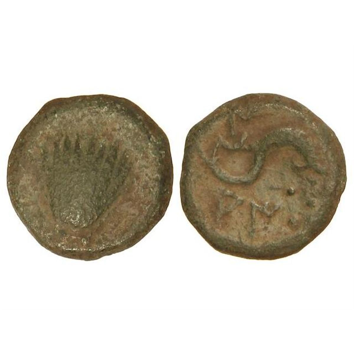 Cuadrante. - ARSE. - Anv.: Concha. Rev.: Delfín a derecha, encima creciente, debajo dos letras ibéricas y tres puntos. AB-2052. MBC. - -