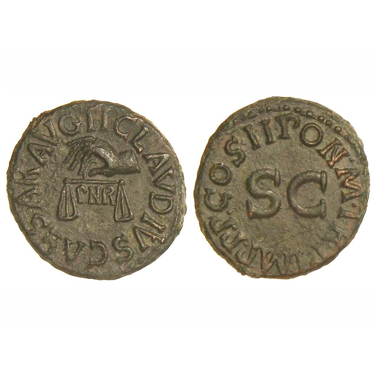 Cuadrante. - Acuñada el 42 d.C. - CLAUDIO. - Anv.: TI. CLAVDIVS CAESAR AVG. y P.N.R. en campo. Mano portando balanza. Rev.: PON. M. TR. P. IMP. P. P. COS. II, alrededor de S. C. 3 grs. AE. Pátina verde oscura. C-73. EBC. - -