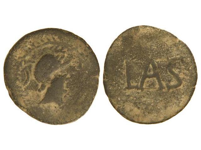 Cuadrante. - LASTIGI. - Anv.: Cabeza masculina con casco a derecha detro de láurea. Rev.: LAS dentro de láurea. 3,90 grs. Pátina verde. (Pequeñas rayitas en anverso). AB-1680. MBC-. - -