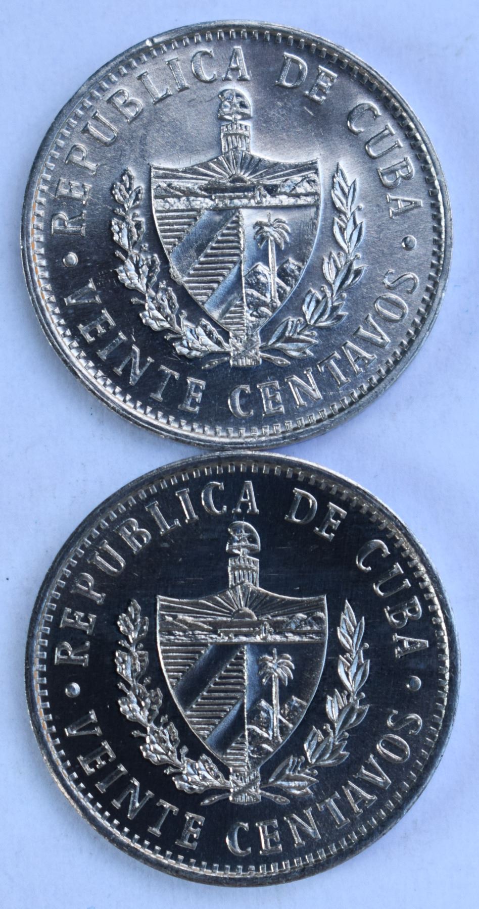 Cuba 0.20c x 2 Error NO DATE (2003) and Original, Aluminum Both Mint State+ (2)