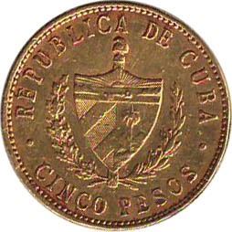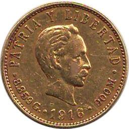 Cuba 1916 Gold 5 Pesos .2419 AGW