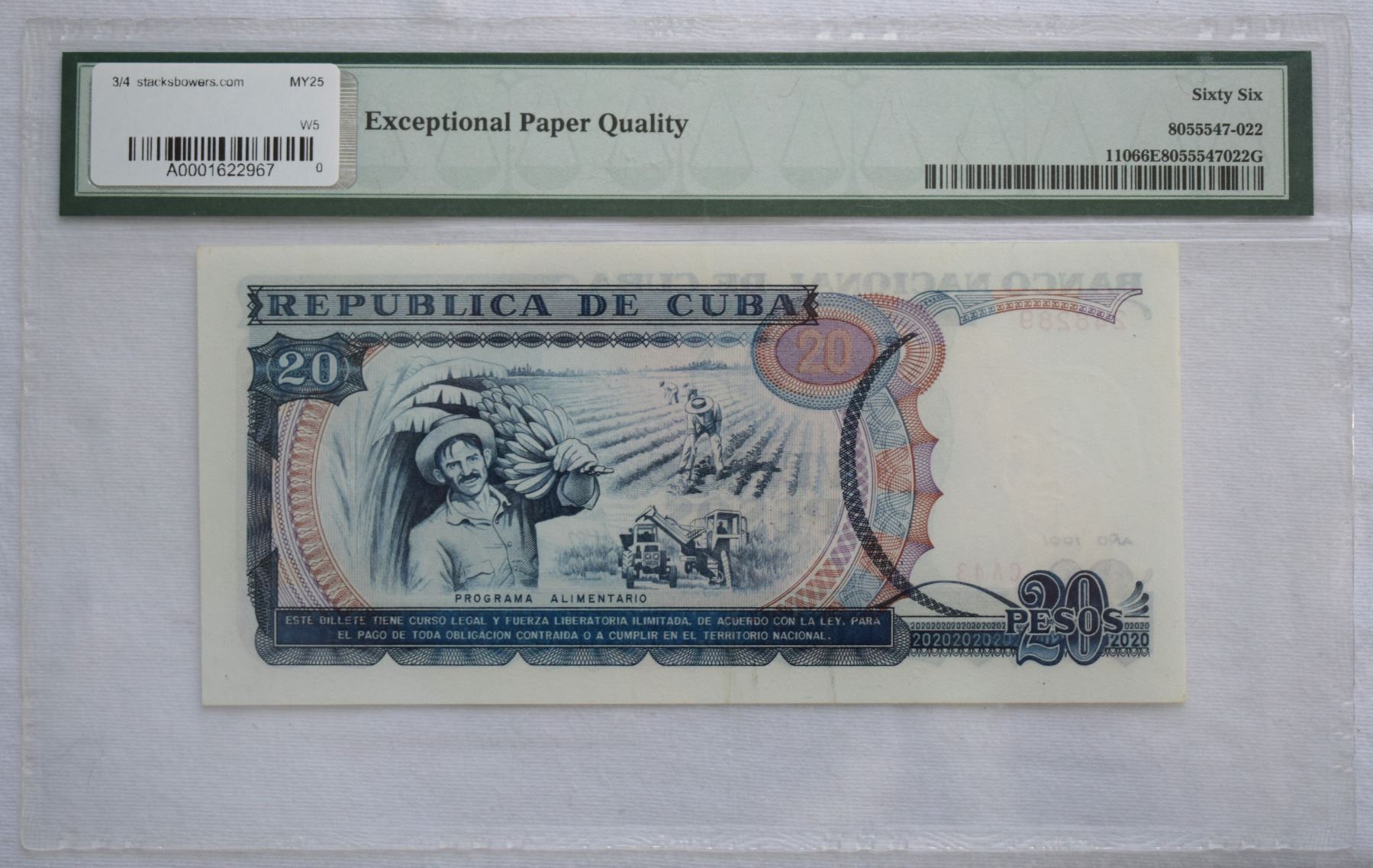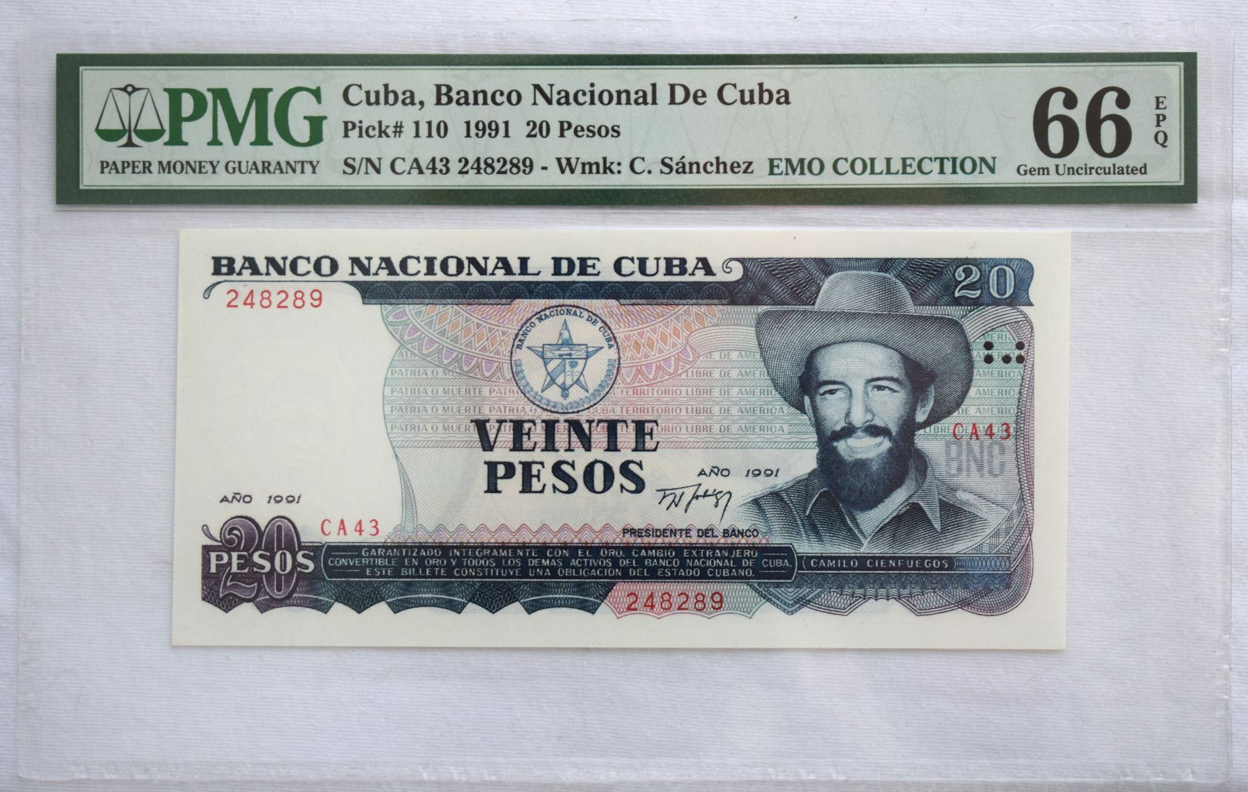 Cuba, 20 pesos 1991 Issued Note Pick# 110 Gem UNC-66 PMG Certified From the "EMO Collection"