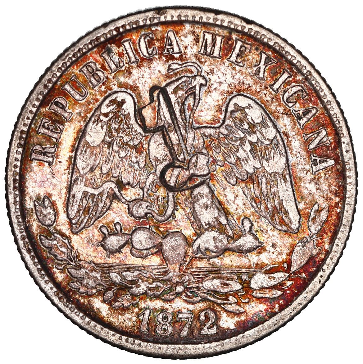 Cuba, 50 centavos, long-and-thin key incuse countermark (1872-77) on a Guanajuato, Mexico, 50 centavos, 1872 S, PCGS XF40. KM-R5.1. Nearly full countermark just above center of eagle side of host, which displays a splashy deep red-gold toning all over. Please use this link to verify the certification number