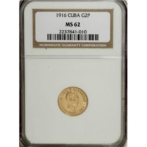 <B>Republic gold 2 Pesos 1916,</B></I> KM17, MS62 NGC, a nice lustrous coin.<BR><BR><b>Shipping:</b> Coins & Currency (<a target="_blank" href="http://www.heritageauctions.com/common/shipping.php">view shipping information</a>)