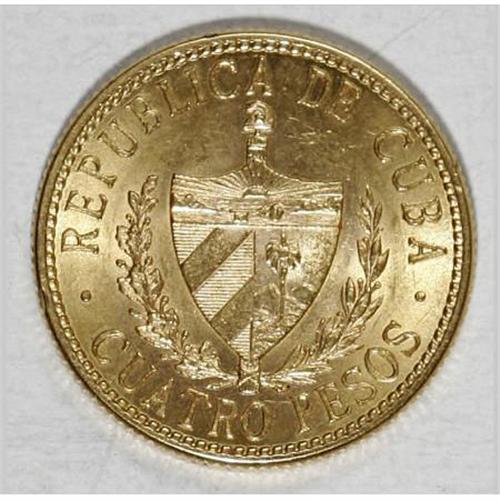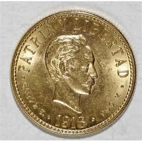 <B>Republic gold 4 Pesos 1916,</B></I> KM18, AU-UNC, a nice example with virtually full mint brilliance.<BR><BR><b>Shipping:</b> Coins & Currency (<a target="_blank" href="http://www.heritageauctions.com/common/shipping.php">view shipping information</a>)