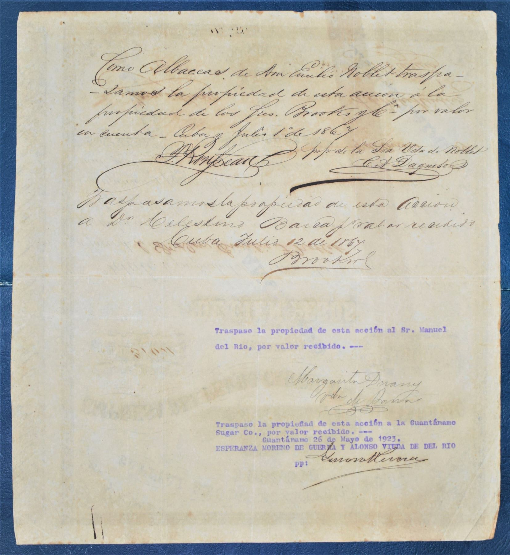 Cuba, Enterprise "Guantanamo Railroad" Share Bond of $100 year 1859 "First Emission" Capital of 400k, Printers "Sydney,Black & Sturn NY. A-UNC Scarse
