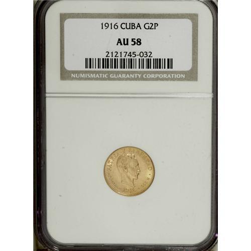 Cuba: Gold 2 Pesos 1916: KM-17, AU58 NGC, nice c